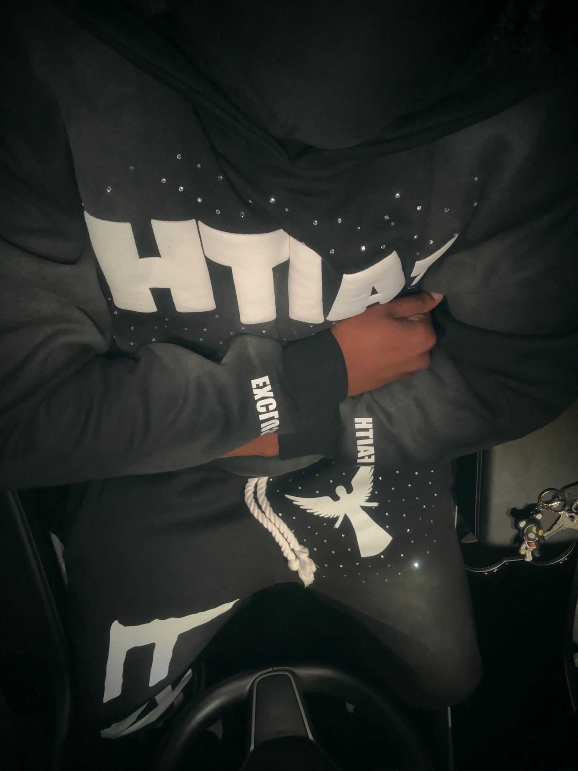 Eye-catching rhinestone accents elevate this essential piece, while hidden embellishments on the inside of the hood and arm cuffs add an exclusive touch that reveals itself with every wear.